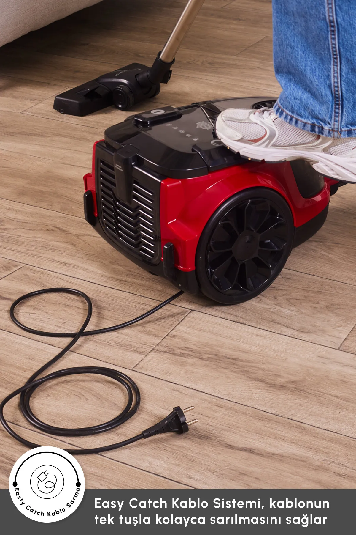 - Easy Catch Kablo Sistemi sayesinde temizlik işlemi bittikten sonra güç kablosunu tuşa basılı tutmaya gerek kalmadan
