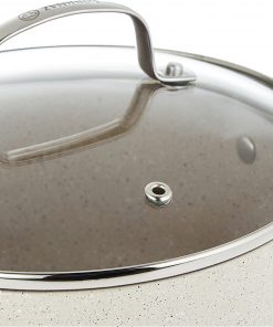 Geri dönüşümlü, tamamen doğal malzemeden, çevre dostu teknoloji ile üretilen granita çizilmeye karşı ekstra dirençli granit görünümlü ptfe kaplama ve yüksek ısıya dayanıklı silikon dış kaplama ile çok az yağ kullanarak lezzetli yemekler yapar.