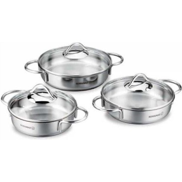 Korkmaz Tombik 6 Parça Omlet Tencere Seti – 18/10 Cr-Ni Paslanmaz Çelik, Cam Kapaklı, 16-18-20 cm Boyutları A1805 Sahan Seti