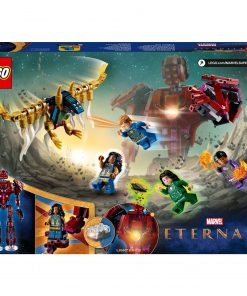 - Ikaris, Sersi, özel Ajak ve Kingo olmak üzere 4 Eternals süper kahraman minifigürü, bir Deviant figürü, göğsünde ışık yanan hareketli bir Celestial, 2 hançer, 1 kılıç, 2 mini atış yapan silah ve bir bıçak içerir
