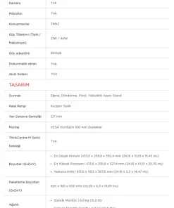 - VESA uyumluluğu ile duvara montaj imkanı sunarak çalışma alanınızı kişiselleştirmenize olanak tanır