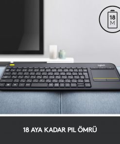 Logitech K400 Plus Touch kablosuz klavye, siyah rengi ile her cihaza uyum sağlar. Dahili geniş dokunmatik yüzeyi, tüm denetimleri bir araya toplar. Bu kompakt klavye, karmaşayı minimuma indirir. Rahat bir kontrol için tasarlanan ürün, sessiz tuşları sayesinde eğlenceli anlar yaşatır.