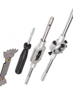 Pratik yüksek kaliteli kılavuz pafta seti DIN-ISO standartlarına uygun imal edilmiştir 7 adet yuvarlak pafta lokması, suda sertleşmiş, sarsım dirençli takım çeliğinden mamül: M3, M4, M5, M6, M8, M10, M12 21 adet kılavuz pafta ucu, krom vanadyum çeliğinden mamül: M3, M4, M5, M6, M8, M10, M12 Kılavuz anahtarı, pafta kolu, tornavida ve diş açıklığı ayarlayıcı ile birlikte Metal Çantalı Pafta uçlarını çalışmaya başlamadan önce pafta açmaya uygun bir yağlama yağına daldırınız. Metrik iç dişler için delik çapları: Nominal Genişlik x Diş Açıklığıx Pafta Çapı M3 x 0,5mm x 2,5mm M4 x 0,7mm x 3,3mm M5 x 0,8mm x 4,2mm M6 x 1,0mm x 5,0mm M8 x 1,25mm x 6,8mm M10 x 1,5mm x 8,5mm M12 x 1,75mm x 10,2mm
