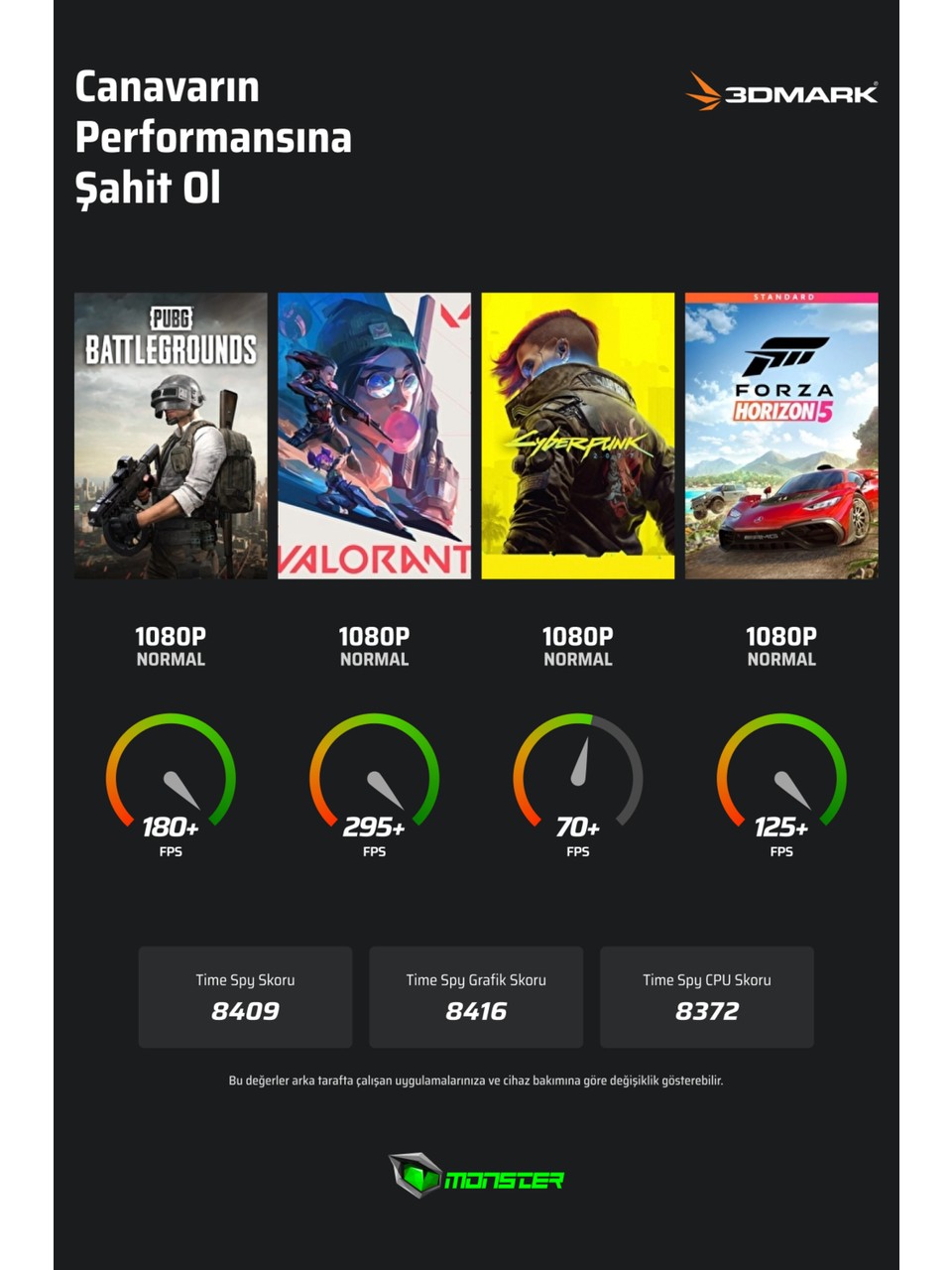 Monster Abra A5 V20.4 Intel Core i5 12450H 16 GB RAM 500 GB SSD 6 GB RTX 4050 FreeDOS 15,6" FHD 144 Hz Oyun Bilgisayarı ean : 8684308100949