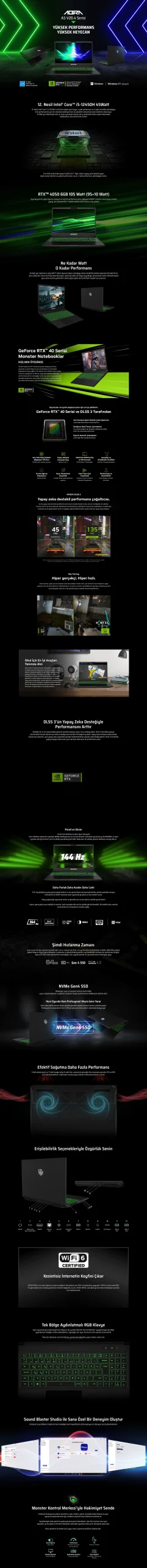 - – NVIDIA GeForce RTX 4050 ekran kartı ile gerçekçi grafikler ve kesintisiz oyun deneyimi
