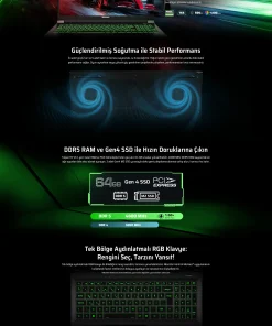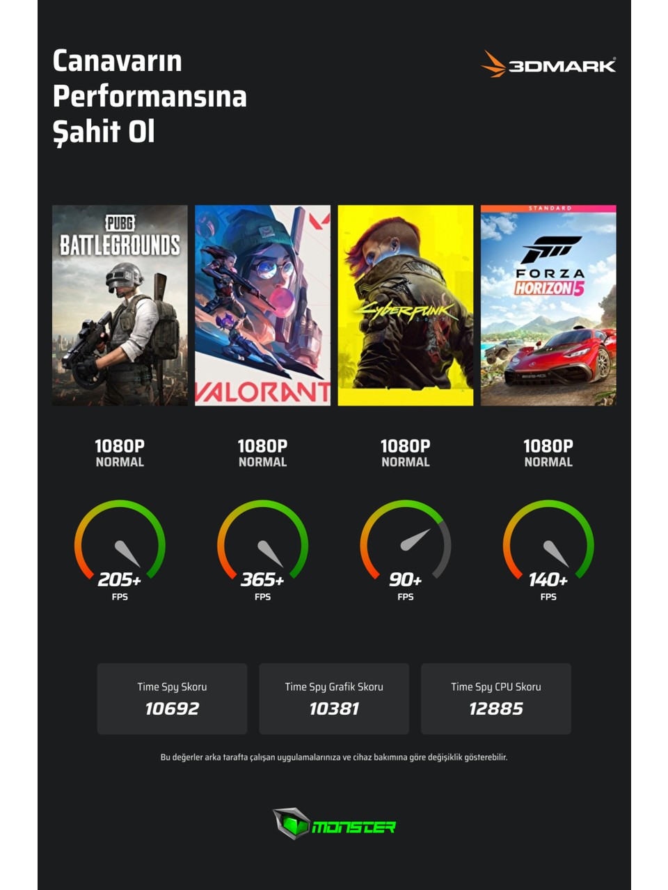 Monster Tulpar T6 V3.1 Intel Core I7 13700HX 16 GB Ram 500 GB SSD 8 GB Rtx 4060 Freedos 16" Fhd 165 Hz Oyun Bilgisayarı