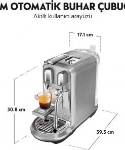 - Premium Tasarım: Nespresso Creatista Plus, zarif dizaynı ve paslanmaz çelik kaplamasıyla, yüksek kaliteli ve sağlam bir tasarıma sahiptir. Ayrıca paslanmaz çelikten oluşan bir barista süt sürahisi içerir