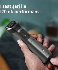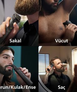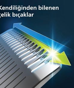 Ayarlanabilir hassas düzeltici tarağı sayesinde 5 kat daha keskin* hatlar yaratarak tarzınızı mükemmelleştirebilirsiniz. BeardSense teknolojisi kıl kökünü algılayarak yoğunluğuna göre bir kesme performansı sağlar; böylece kişiselleştirilmiş bir deneyim sunar. Kendiliğinden bilenen çelik bıçaklar yağlamaya gerek kalmadan ilk günkü keskinliğini korur. Yüz, Saç ve Vücut için kullanılan çok amaçlı başlıkları sayesinde tepeden tırnağa tüm bakım ihtiyacınızı karşılar. Hem ıslak hem kuru kullanılabilir ayrıca tüm başlıkları musluk altında yıkayabilirsiniz. 1 saat şarj 120 dk performans + 5 dk’lık hızlı şarj opsiyonu