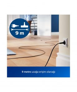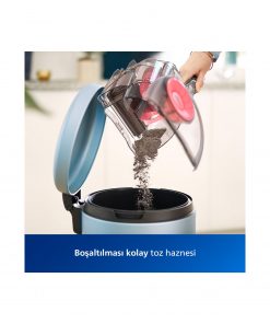 Küçük ve hafif tasarımı sayesinde süpürgeyi kaldırmak ve taşımak çok kolay.
