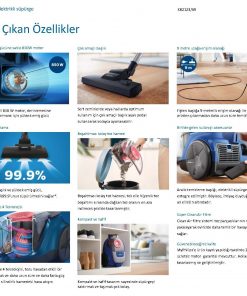 Çok amaçlı başlık ve yüksek emiş gücü, ince tozların %99,9'unun süpürülmesini sağlar.*