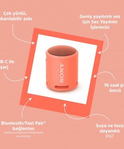 Sony SRS-XB13 Extra Bass Taşınabilir Kablosuz Hoparlör Pembe