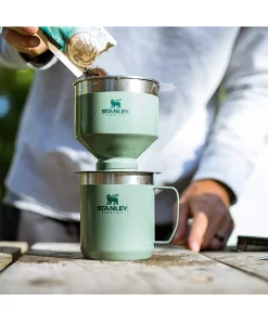 Kahve deneyiminizi Stanley kahve demleme seti ile yenileyin! Stanley Pour Over kahve makinesi, Paslanmaz Çelik filtre kullanarak geleneksel kahve demleme zevkinizi sürdürür. Kullanımı kolaydır ve çevre dostudur.