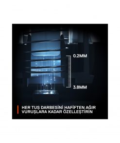 Mutlak hassasiyet ve eşsiz kişiselleştirme parmaklarınızın ucunda. Tuş vuruşlarınızın kayıt mesafesini en yakın 0,1 mm'ye ayarlayın. 0,2 mm'lik tüy gibi hafif dokunuşu veya 3,8 mm'de sert baskıyı tercih edin, seçim sizin.