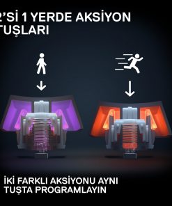 Nasıl bastığınıza bağlı olarak, tek bir tuşa iki eylem programlayın. Hafif bir tuşa basarak ileriye doğru yürüyün ve ardından aynı tuşa daha derin basarak hızla koşun. Rekabeti geçmek için kendi gelişmiş kombinasyonlarınızı oluşturun.