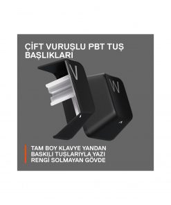 Kalite ve dayanıklılıkta dev bir sıçrama yaşayın. Solmaya karşı dayanıklı PBT tuş başlıklarımız, gelişmiş tuş vuruşu hissi ve daha iyi yazma doğruluğu için benzersiz bir dokuyla tasarlanmıştır. Yandan yazdırılan ikincil eylemler, size tam boyutlu bir klavyenin tüm işlevlerini sağlar.