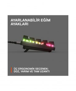 Apex Pro Mini, yandan baskılı ikincil işlevleriyle tam boyutlu bir klavyenin tüm özelliklerini korurken, oyun kazandıran fare kaydırmaları için masanızda daha fazla alan yaratmak üzere tasarlanmıştır.
