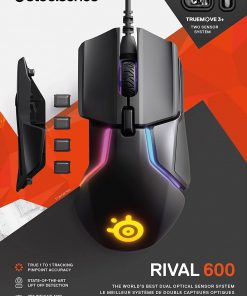 Rival 600, oyuncuları dünyanın en gelişmiş çift sensör sistemi TrueMove3 + ile tanıştırıyor. TrueMove3 optik sensör gerçek 1'e 1 izleme sağlarken, dünyanın en düşük ve en doğru kalkış mesafesini elde etmek için son teknoloji özel bir derinlik algılayıcısı kullanır. Kişiselleştirilebilir ağırlık kombinasyonlarıyla herhangi bir tutuş veya oyun oynama stilinin mükemmel dengesi için ağırlık merkezinizi ayarlayabilir, 4 gramlık dahili sekiz ağırlığın kolayca ve güvenle yerleştirilmesini sağlar. 60 milyon tıklama ömrü ile mekanik anahtarımız her türden basmanın hassasiyetle gerçekleştirilmesini sağlar.32 bit ARM işlemci, düşük gecikme süreli performans sunar ve LAN etkinlikleri ve turnuvalarda yazılımsız kullanım için CPI ve kalkış algılayıcı ayarlarını, aydınlatma efektlerini, kişisel düğme düzenlemelerini ve tam makroları kaydetmenize izin verir.