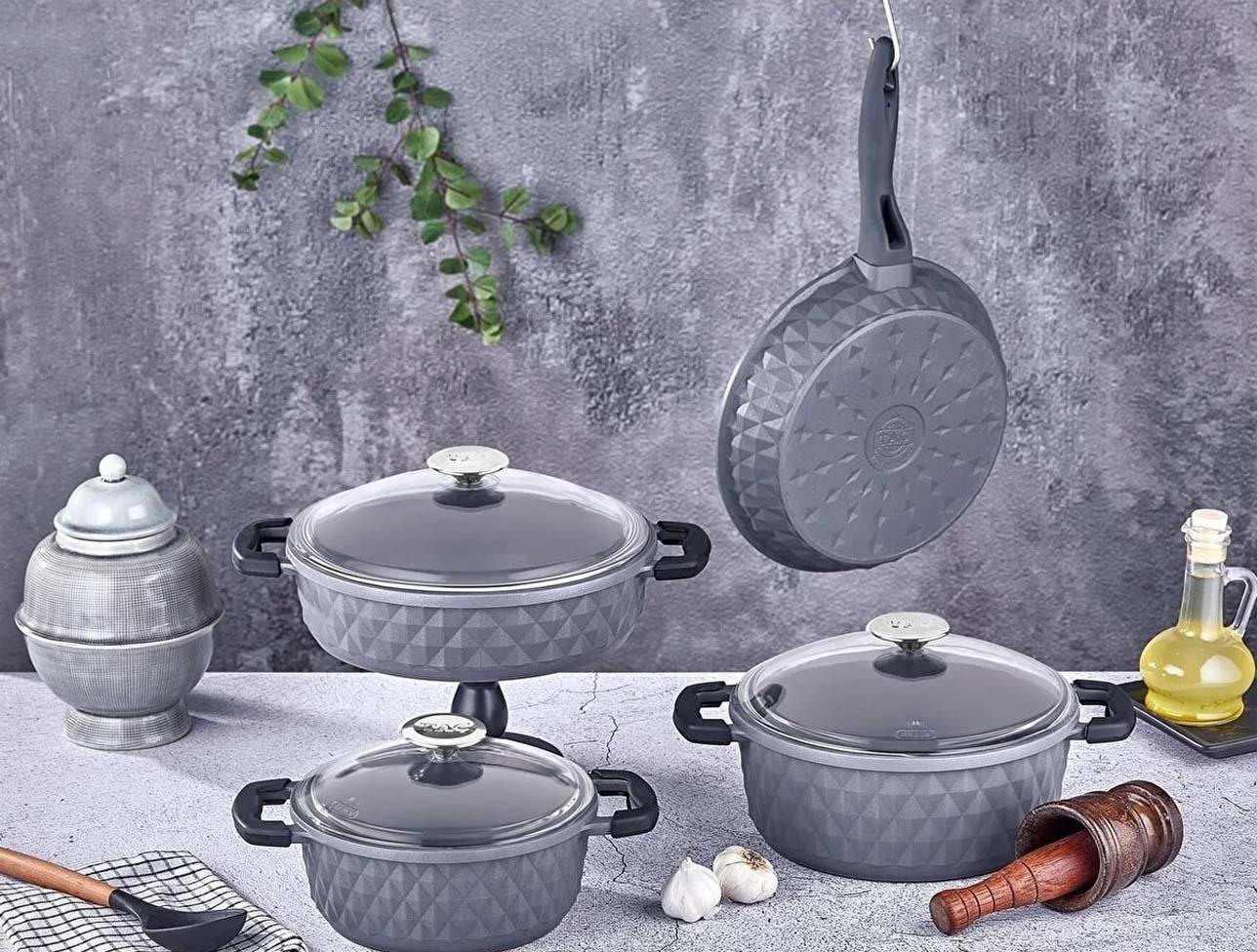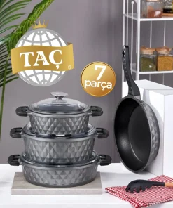 Taç Carabella Döküm 7 Parça Tencere Seti Gri Taç 3818