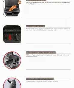 Tefal tost makinesi şık ve işlevsel kullanımı sayesinde mutfakların vazgeçilmez parçalarından biri olmayı vadediyor. Makine 600 cm2 pişirme yüzeyi sayesinde en kalabalık ortamlarda bile eşsiz ve keyifli yemek pişirme deneyimi sunmaktadır. Ürün kolay saklama özelliği sayesinde yemek pişirme işlemi bittikten sonra alan tasarrufu imkanı sunmaktadır. Cihaz çalışırken 2000 W enerji tüketmektedir. Bu özellik kolay ısınma özelliği ile birleşerek yakıt tasarrufu vadetmektedir. Ürün ızgara, barbekü ve mini fırın fonksiyonları sayesinde her türlü yemek pişirme deneyimi yaşatmayı vadetmektedir. Makine ayarlanabilir 3 farklı ısı ayarı ile yiyeceklerin istenilen sıcakta pişirilmesini sağlamaktadır.