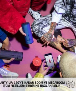 Hoparlörleri eşleştirin, sesi yükseltin, Ultimate Ears uygulamasındaki PartyUp özelliğini kullanarak 150'den fazla hoparlörü eşleştirin ve ses deneyimini doruklarda yaşayın, her Boom ve Megaboom modelini birbiriyle eşleştirebilirsiniz