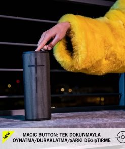 Boom 3'ün yepyeni Magic Düğmesi'yle parçaları doğruca hoparlör üzerinden oynatabilir, duraklatabilir veya atlayabilirsiniz, yalnızca bir düğmeyle müziğinizi denetleyin