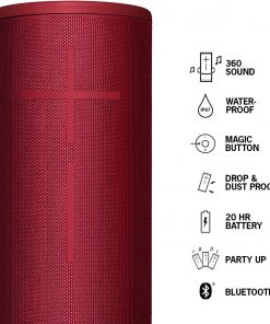 Ultimate Ears Megaboom 3, Taşınabilir Bluetooth Hoparlör, 360° Ses, Su ve Toz Geçirmez, 20 Saat Pil Ömrü, 45 Metre Çekim Mesafesi, Kırmızı