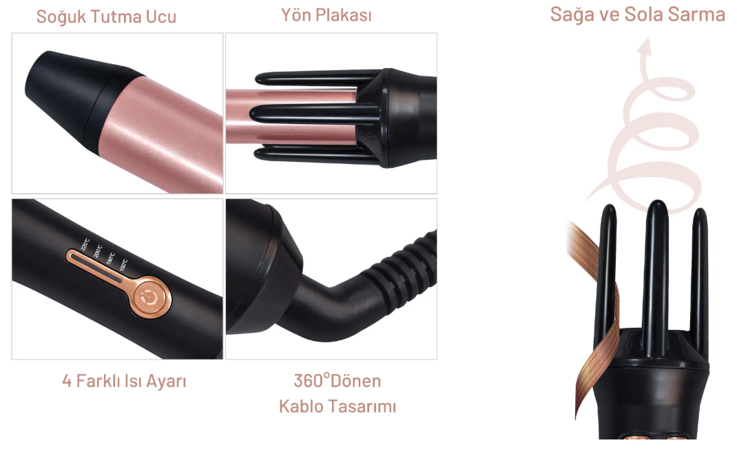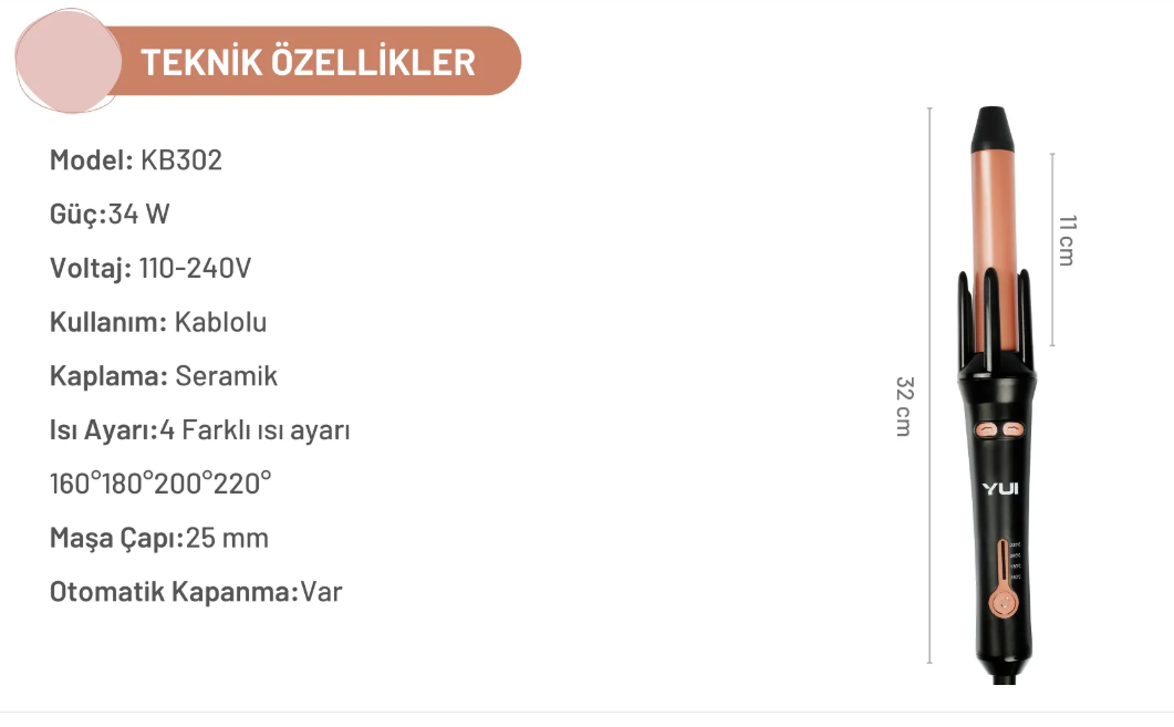 Yui Kb302 360 Derece Otomatik Dönen 25 Mm Kalın Saç Maşası & Saç Şekillendirici